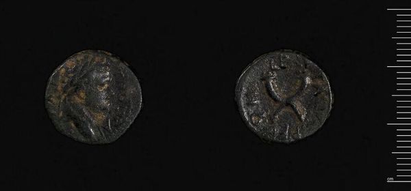 Curator: This is a bronze coin issued by Abd-al-Malik of the Umayyads. Editor: It looks worn and small, almost forgotten by time. Curator: Indeed. It’s intriguing because it imitates Byzantine coinage, depicting Herakleios with his sons, but with subtle yet powerful changes. Editor: I see the figures, though faintly. The lines are quite linear; did they change the design much? Curator: Substantially! It signified a shift in power. Abd-al-Malik gradually replaced the Byzantine imagery with Arabic script, marking a pivotal moment in the Islamic world. Editor: So, it represents not just an economic instrument, but also a bold declaration of cultural and political identity? Curator: Precisely. This coin is a statement, a visual signal of a new era taking shape. Editor: The details may be subtle, but their cumulative effect is undeniable. It's like seeing history compressed into a tiny, metallic form.