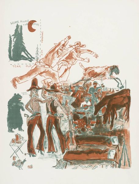Curator: Ernst Ludwig Kirchner's 1916 work, "Das Mahl im Sanatorium," or "The Meal in the Sanatorium," captures a poignant scene. It’s an ink drawing on paper, currently housed here at the Städel Museum. Editor: The overwhelming impression is unease. A stark, unsettling intimacy fills the composition; the scratchy lines create a visual tension that hints at instability. Curator: Precisely! Consider the conditions of its creation. Kirchner volunteered for military service during World War I, but suffered a mental breakdown and spent considerable time in sanatoriums. This work offers a glimpse into that environment. Editor: That context deeply informs the piece. The ink itself becomes a tool of expression –cheap, accessible, yet capable of conveying such profound distress. Look at the repeated lines, almost manic, across the figures. I wonder about the source of his inks at the time. Did his choice to continue using ink from before the war offer him any solace? Curator: The social backdrop certainly shapes the content and meaning. These weren't just places of healing; they reflected broader societal anxieties about mental health and the war’s psychological toll. The imagery certainly pulls that to the forefront. Notice the hierarchical arrangement? Editor: It does strike me. A clear divide. Formally, it suggests power dynamics within the sanatorium. And I find myself returning to that pervasive feeling, the quality of the paper and the texture the ink achieves really bring out its disturbing intimacy. Curator: Ultimately, "Das Mahl im Sanatorium" encapsulates a pivotal moment, mirroring larger questions surrounding wartime trauma, art institutions, and personal and social breakdown. Editor: I agree. Through a critical engagement with the context of the image, its social influences and materiality become so very evident, offering a haunting, lasting impact.