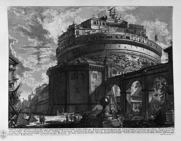 This is Giovanni Battista Piranesi's "The Roman Antiquities," an etching, showcasing the Castel Sant'Angelo and the Ponte Sant'Angelo in Rome. Piranesi, living from 1720 to 1778, created this during a time when Europe was rediscovering its classical past, fueling both artistic inspiration and colonial ambitions. Piranesi wasn't just documenting Rome; he was reimagining it. Notice how the figures in the foreground are dwarfed by the architecture, emphasizing the grandeur, and perhaps, the might of Rome. The play of light and shadow adds drama, evoking a sense of sublime power. Piranesi was deeply invested in the aesthetics of ruins, a taste that romanticized the past. But let’s ask, whose past? Rome's grandeur was built on empire, on the backs of enslaved peoples and colonized lands. Piranesi’s Rome, therefore, is a complex symbol, fraught with histories of power and exclusion. This piece captures not just a place, but a set of ideas about history, power, and identity that continue to shape our world.