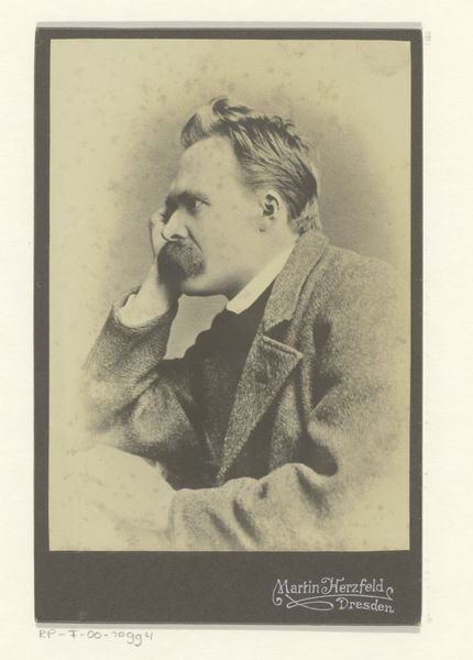 Editor: Here we have John Garo’s photographic portrait of Eugene Foss, its date unfortunately unknown. There's something very heavy about the image, both literally in its dark tones and conceptually in its presentation of power. What stands out to you? Curator: Consider the process of creating such a portrait. The photographer, the sitter, the darkroom labour, and the economic transaction enabling it all. How does this photograph reflect the labor of portraiture in the early 20th century, and how does its materiality—the paper, the developing process—speak to its value as a commodity? Editor: That’s fascinating. So you’re suggesting we see this not just as a representation of a man, but as a product of a complex system of labor and materials? Curator: Precisely. This image is also a reflection of Garo’s studio practice and his strategies for marketing himself within Boston's elite circles. Editor: That gives me a lot to think about regarding how we assign value to portraits, then and now. Thanks! Curator: My pleasure. It’s important to consider the material reality behind every image we encounter.