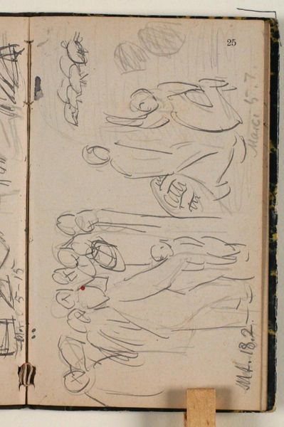 Niels Larsen Stevns created this biblical motif on paper using graphite. At first glance, the drawing appears to be a jumble of lines. Yet, upon closer inspection, distinct figures begin to emerge, each rendered with a sense of dynamism. The composition is divided into two registers, each presenting a fragment of a biblical narrative. Note how the artist uses rapid, gestural lines to capture the figures in motion, as if freezing a fleeting moment in time. There’s a deliberate lack of detail, pushing the essence of form and movement to the forefront. This abstraction invites us to engage actively with the artwork, piecing together the narrative through the artist's formal choices. The drawing challenges conventional notions of representation by emphasizing the process of creation over the final product. It invites us to appreciate the raw energy and creative impulse behind the work.