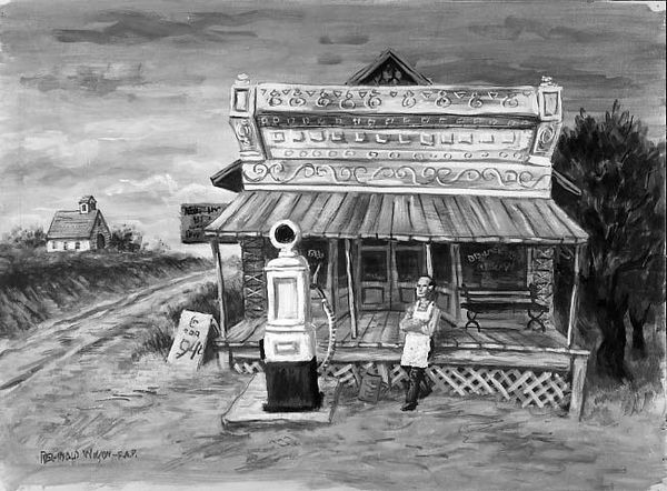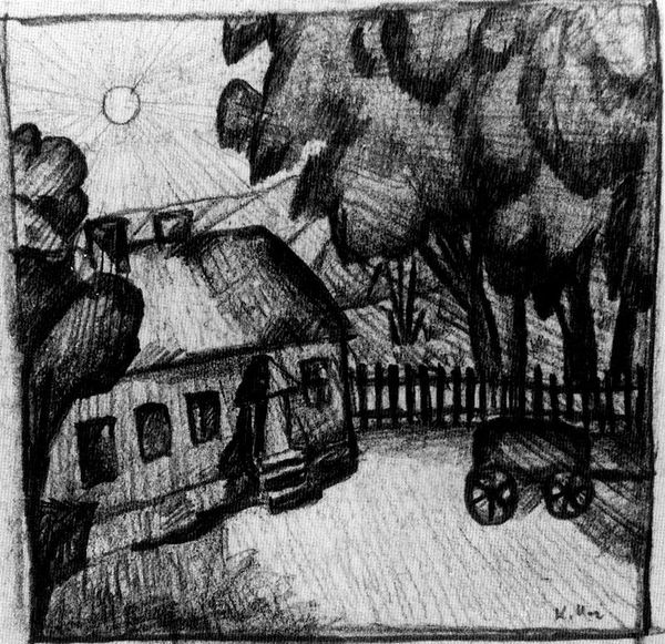 Editor: This is Daniel Koerner's "Farm in Moonlight," created in 1938. It’s at the Met in New York. It’s quite eerie – almost surreal – with that stark contrast. What stands out to you in its composition? Curator: Observe how Koerner employs a monochrome palette, meticulously structuring light and shadow. The pencil and tempera contribute to a flat picture plane. Do you see how he manipulates tonal values to create depth where logically there should be none? The geometric rendering of the farm structures further emphasizes form over realistic representation. Editor: I notice that too. The sharp lines of the buildings against the softness of the night sky create this tension. And that object in the foreground – it looks like a well but feels so out of place. What is it doing there? Curator: Precisely. This discord disrupts our understanding of space. The juxtaposition creates unease, achieved by the artist's acute awareness of formal relations: texture, tone, and line. Do you find the linear execution suggestive of emotional tension? Editor: Definitely. It's not just a peaceful rural scene; there’s something unsettling about it. The way the lines define every detail, but the composition feels unbalanced... Curator: And what do we make of this emphasis? The structure does not abide by the visual logic of natural forms; the lack of modulation calls into question our interpretative assumptions of landscape painting itself. Consider also the horizon line. It all contributes to a flattened, almost theatrical space. Editor: I see what you mean! Focusing on the formal aspects really shifts the way I experience the piece. Thanks, that’s so helpful. Curator: Indeed. Paying close attention to these structural qualities can unlock further possibilities for interpretation.