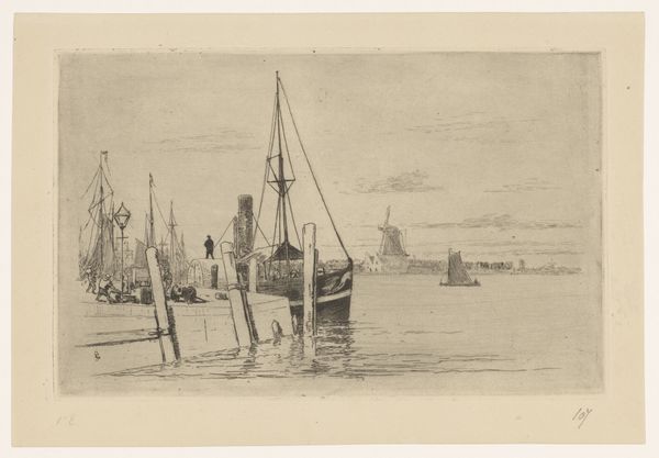 Philip Zilcken made this etching, "Strandgezicht met boten op het strand en in de zee", with some kind of metal plate and acid, but the magic really lies in how the lines create light. Look how the sky is empty but still feels full of atmosphere, like a hazy summer day. What I love about etchings is how the artist coaxes a whole world out of the most humble materials. Zilcken's lines are delicate but confident, mapping out the textures of the boats and the vastness of the sea. Notice the tiny figure standing near the boats. Zilcken lets a single, dark mark suggest the figure, and with so little information our minds fill in the rest. It’s like he’s saying, "Here's a world, now make it your own." Zilcken was part of a generation of artists exploring modern life, like Whistler, who were interested in the fleeting and atmospheric qualities of their environment. And like them, his work reminds us that art isn't about perfect representation. It's about capturing a feeling, an experience, a moment in time.