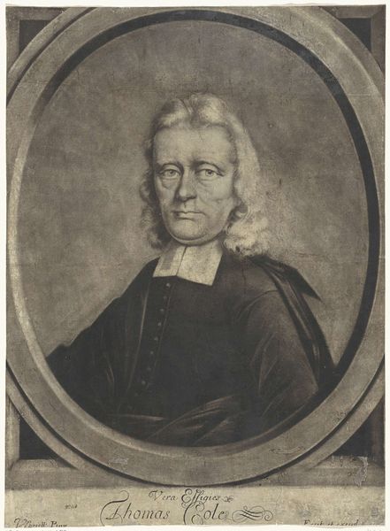 Editor: This is Thomas Gainsborough's "The Rev. Samuel Uvedale," painted between 1770 and 1774 using watercolors. I'm struck by its formal, almost severe mood. What sociopolitical narratives do you think are at play here? Curator: That severity you note is key. Think about the Church of England's role during this period. It held immense social and political power. This portrait, in its deliberate restraint, visually reinforces that power structure, doesn't it? How do you see Uvedale's gaze fitting into this context? Editor: It's very direct, almost confrontational, definitely suggesting authority. Is Gainsborough perhaps making a statement about the Church's authority? Curator: Precisely. Gainsborough, though a society portraitist, was deeply aware of these power dynamics. The rendering of Uvedale, the black robe, the wig, all symbolize his position, reinforcing the visual rhetoric of dominance. How does the romantic style intersect with this representation of power? Editor: Romanticism often focused on the individual, yet here, Uvedale seems almost generic, a symbol rather than a person. So maybe Gainsborough critiques the institution by suppressing individuality? Curator: That’s a very insightful point. Consider the limited palette, the almost formulaic composition. Gainsborough presents a man subsumed by his role, inviting a critical examination of the church’s influence and the individual's place within it. It raises questions about how institutions shape identity. Editor: I hadn't thought about it that way. Now I see the portrait as less about the man himself and more about the system he represents. Thanks. Curator: It's about questioning the established order, even within the constraints of a formal portrait. Thinking about it from an intersectional perspective enriches our understanding greatly, wouldn't you agree?