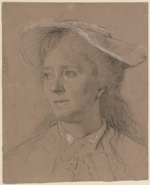 Thérèse Schwartze, a Dutch portrait painter, sketched “Woman with Hat” using what looks to be charcoal on paper. Schwartze lived in a time of shifting roles for women in the art world. Consider the gaze of the woman here. There's a directness, an engagement, but softened by the shadow cast by her large hat. This era saw women artists navigating between traditional expectations and new freedoms. Schwartze, who came from a family of artists, achieved considerable recognition. It makes you wonder how she navigated the complex social expectations of women at that time, and if this portrait captures a negotiation between visibility and privacy. Reflect on how the simple medium, charcoal, brings an immediacy to the image. It invites us to consider the fleeting moments of identity and representation. It's a delicate dance between revelation and concealment.