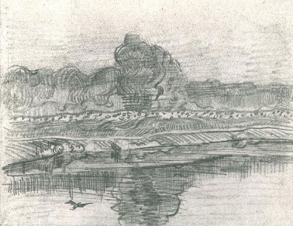 This landscape, Rocky seashore, was drawn by Konstantin Bogaevsky using graphite. Look at the sky, made up of these tiny, soft, almost nervous marks. It’s like he’s trying to capture the atmosphere itself. And the rocks, they have this solid, sculptural presence, but they’re also dissolving into the light. I’m drawn to the way Bogaevsky uses the graphite to create texture. The rocks are rough and jagged, but then the water is so smooth and still. It's almost like he is feeling the landscape, translating what is under his fingertips into marks on the page. Notice the way he uses dark and light to create depth. The contrast is subtle, but it’s what makes the scene feel so alive. Bogaevsky reminds me of Caspar David Friedrich, both artists were interested in the sublime power of nature. But where Friedrich is romantic, Bogaevsky is more…meditative? It’s like he is inviting us to slow down and really see the world around us.