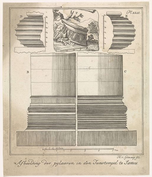 J.F. Clemens created this print, "Iver Huitfeld," with etching, sometime between the late 18th and early 19th centuries. The structure of the image presents a study in contrasts, setting the intricate details of the carved wood against the plain background. This contrast invites a focus on the materiality and texture, and how it engages with a deeper, semiotic reading. Consider how Clemens arranges the elements. The deliberate composition with the broken remnants of the ship creates a symbolic framework. The 'Iver Huitfeld' inscription bisects the form, further fragmenting any cohesive narrative. Clemens isn't merely depicting a shipwreck; he is dissecting the ideas of memory and ruin. The ship, now reduced to fragments, challenges fixed meanings, prompting us to confront the themes of impermanence and transformation. The seemingly straightforward depiction of wreckage becomes, upon closer inspection, a sophisticated commentary on history. Its structure functions as a poignant reflection on the passage of time.