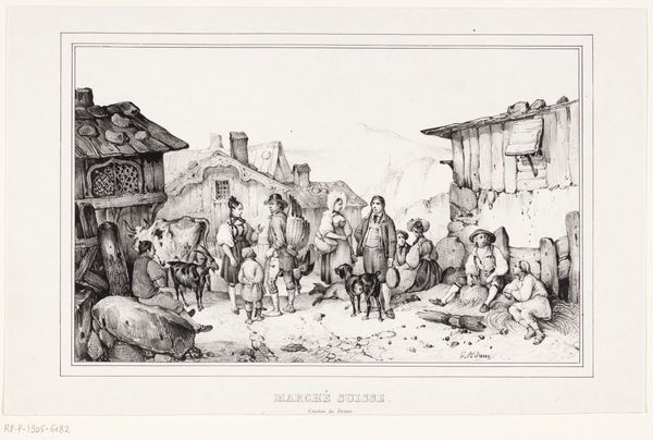 Editor: We're looking at "Ridders op een markt," or "Knights at a Market," an engraving from sometime between 1832 and 1900 by Adolphe François Pannemaker, housed in the Rijksmuseum. It feels like stepping into a storybook, all these people bustling about, knights standing amongst them. How do you interpret this work within its historical context? Curator: This engraving offers us a glimpse into the romanticization of the medieval period during the 19th century. Genre scenes like these, especially as prints, democratized history painting, bringing images of knights and bustling market life to a wider audience beyond the aristocratic elite. It’s not necessarily about historical accuracy, but rather tapping into a sense of idealized past. Do you notice any elements of fantasy within this realistic scene? Editor: I suppose the very presence of fully armored knights mingling casually amidst common folk feels a bit staged, like a historical reenactment rather than daily life. Curator: Precisely. This idealized version of the medieval world reflects specific socio-political interests. Consider the rise of nationalism in the 19th century. Images like these fostered a sense of national identity rooted in a glorified past. The image normalizes ideas around hierarchy. Think about the function of the Rijksmuseum itself, built in this period: to tell a particular national story, shaping collective memory through selective historical representation. Who gets to write history and what purpose does it serve? Editor: That makes so much sense! It's more than just a snapshot of a market; it's a carefully constructed narrative about power, history, and national identity being made accessible for a large audience. Curator: Exactly. Engravings such as this one served a vital public function in disseminating ideas and shaping public perception. Reflecting on this teaches us the importance of considering context and institutional power when we engage with artworks. Editor: I hadn't thought about how prints themselves can be powerful tools for shaping cultural understanding. It definitely adds layers to how I appreciate and interpret this image.