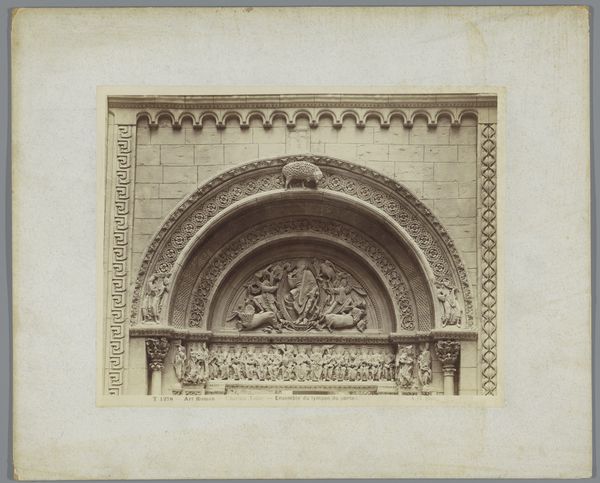 This photograph, taken by Médéric Mieusement, captures the tympanum of Autun Cathedral, presenting the Last Judgement in a play of light and shadow. The composition centers on the figure of Christ, framed by a mandorla, whose symmetry is echoed in the balanced chaos of rising souls and descending demons. Mieusement frames the scene in such a way that highlights the stark contrast between salvation and damnation; the materiality of the stone is softened by the photographic medium, yet the message is clear. This binary reflects not just religious dogma but also broader structuralist themes of opposition and categorization inherent in human understanding. The arrangement of figures, frozen in their eternal fate, provokes contemplation on the arbitrariness of such divisions, questioning fixed moral codes through its visual narrative. The photograph's enduring power lies in its ability to capture a moment of judgement that resonates beyond its religious context, prompting ongoing re-evaluation.