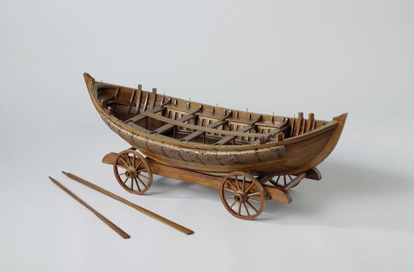 This is a scaffolding model of a 60 to 68-gun ship, made by Schelte Hasselaar. The Dutch Republic in the 17th and 18th centuries was a leading maritime power, with a vast global trade network and a powerful navy. This model offers a glimpse into the intricate process of shipbuilding, a crucial industry in the Dutch Golden Age. These models were made by shipwrights to explain the structure of the ship to prospective builders. The unfinished state allows us to see the internal framework, revealing the complex engineering and craftsmanship required to construct these vessels. Understanding the social conditions that enabled such maritime power—from the economic systems that fueled trade to the political structures that supported naval expansion—is crucial to interpreting this work. Careful archival research would help us explore how Dutch society was shaped by its relationship with the sea.
