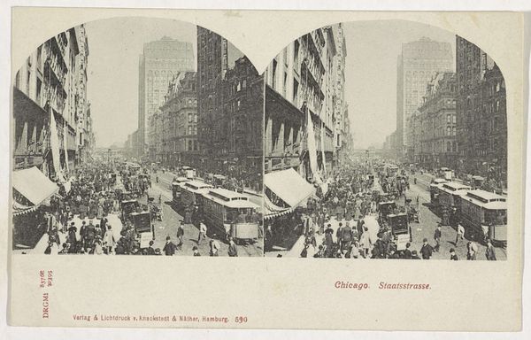This photograph, "Straat met trap en mensen in Napels," was created by Fratelli Alinari. It captures a bustling street scene in Naples, Italy. Photography in this era served not only as a means of documentation but also as a tool for constructing narratives around identity, particularly concerning class and labor. The image offers us a glimpse into the daily lives of the working class, their labor etched into the very fabric of the cityscape. The architecture looms over them, a stark reminder of the socio-economic structures that define their existence. In viewing this photograph, one is invited to reflect on the collective experience of urban life and the ways in which individual identities are shaped by the built environment and the socio-economic conditions that prevail.