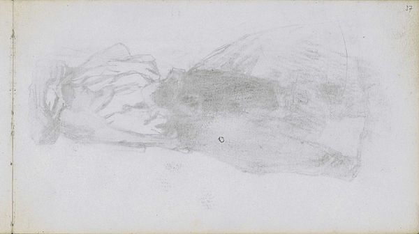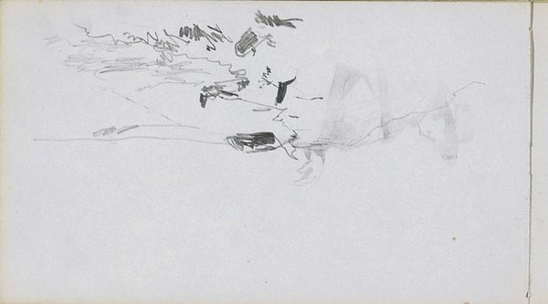Curator: This work, "Abklatsch van de tekening op pagina 13 recto", made sometime between 1834 and 1903, is a pencil drawing by Johan Hendrik Weissenbruch, currently held at the Rijksmuseum. What are your initial thoughts? Editor: A faint landscape emerges, or rather, is suggested. It’s melancholic, almost ethereal, possessing a haunting ambiguity through the limited tonal range of pencil on paper. It reminds me a bit of a half-remembered dream. Curator: Notice how Weissenbruch employs a masterful interplay of light and shadow using dry media, with the barest minimum of marks. The overall composition favors a horizontal arrangement, directing the eye across the implied land and sky. It's as much about what isn't there as what is. Editor: I agree. It also appears quite vulnerable in its simplicity. As Weissenbruch renders what appears to be a serene countryside, I think about the socioeconomic tensions arising in late 19th century Netherlands—the increasing disparity between the wealthy urban class and those living in rural communities. Was this idyllic vision of pastoral life, presented with muted, almost ghost-like, visual vocabulary a deliberate response? Curator: I appreciate your social read on the work. But from a purely formal standpoint, consider the economy of means—the restraint and precision of the pencil work is exquisite. This suggests that it can stand alone without having to reach so much beyond its aesthetic borders. Editor: True, Weissenbruch displays technical brilliance, but even such 'objective' elements don't exist in a vacuum. A 'simple' landscape can speak to complex lived experiences. Curator: An astute point. But for me, its enduring appeal is the pure, unadulterated focus on the rendering of form through delicate gradations. Editor: And perhaps for others, the real power rests in its potential to act as a visual touchstone to the artist's era. It encourages us to reflect on society as a whole. Curator: I see your perspective, and in the end, I suppose this is how we keep art alive. By looking through both lenses. Editor: Indeed. And enriching our understanding of its context in time.