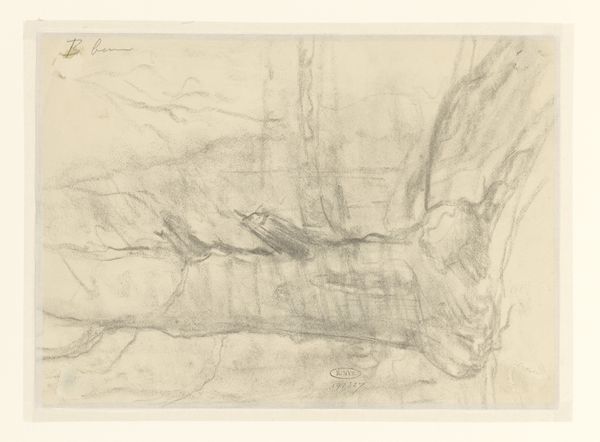 Curator: Here, at the Rijksmuseum, we see "Sketch of a Landscape" by Jozef Israëls, likely created between 1834 and 1911, employing pencil as his medium. Editor: Mmm, ghostlike! I feel a shiver, not just from the landscape's apparent bleakness, but the delicacy of the drawing itself. It’s like catching a wisp of memory on paper. Curator: Precisely. Israëls, associated with the Hague School, often depicted the lives of ordinary people. Considering this, and the rise of social realism in the Netherlands at the time, it invites us to consider land ownership, labour and perhaps even rural poverty and its representation within landscape art. Who owns this space? How is the natural world depicted in connection with everyday experience? Editor: Yes, there is a weight there. But I am really stuck on this ephemeral quality! I wonder if it's intentional, perhaps hinting at the transient nature of life itself, set against the perceived permanence of the land? You know, the way smoke just kind of…forms and reforms... It also brings to mind all that pressure and art-world expectation to create a perfectly realized, technically stunning masterwork. He resisted! How cool. Curator: The sketch aligns perfectly with an era where artists began questioning academic traditions. Israëls work challenged conventions to depict modern reality with raw honesty, critiquing idealized landscape paintings which conveniently forgot human labour and conflict. His art aimed to be accessible, fostering social empathy for rural life. The stark contrasts further reinforce this idea. Editor: Accessibility for all! Not just the upper crust or stuffy art world elites. To heck with them, this feels radical in its quiet way, pushing against expectations and constraints of the era... And kind of a relief. Curator: Exactly, by understanding the societal implications, this "simple" sketch becomes a vehicle for progressive ideology. Israëls’ choice wasn't just stylistic. Editor: So it is more than meets the eye…well I think I will spend just a little more time here with the ghosts. Curator: And I am glad it opened up an entrypoint for exploring the artwork with sociohistorical contexts in mind. Thank you.