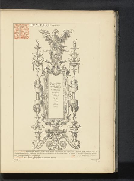 This is a reproduction of a design with two cartouches by Hans Vredeman de Vries, rendered anonymously. Its dominant features are the ornamental frames around inscribed texts, each a study in contrasts and controlled symmetry. The upper cartouche presents a lighter, almost ethereal quality, with cherubic faces flanking the central text. The lower cartouche introduces a darker, more grotesque sensibility. Here, the faces are replaced by demonic visages, suggesting a meditation on mortality and the grotesque. The use of architectural elements, such as volutes and keystones, anchors the design in classical traditions, yet these are subverted by the introduction of morbid details. The composition explores the tension between the sacred and the profane, reflecting a broader cultural preoccupation with sin and redemption. Ultimately, this design serves as a reminder of art’s capacity to destabilize established meanings and engage with complex philosophical themes.