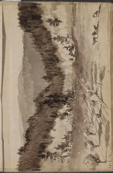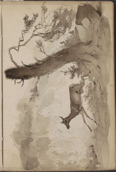 Johannes Tavenraat made this drawing with pen in gray inkwash, depicting deer in a zoo in Bohemia. Note how the composition is structured to offer both a landscape and an intimate glimpse into animal life. Tavenraat masterfully uses the ink wash to create depth and shadow. The contrast between the dark, dense forest on the left and the open, light-filled space on the right draws our eye across the scene. The deer, positioned near the center, are rendered with quick, economical lines. The artist captures their form with minimal detail. The tree acts as a vertical anchor, its stark, leafless branches providing a counterpoint to the softer forms of the landscape and animals. This strategic arrangement of elements, from the dense ink work to the open spaces, speaks to the formalist concerns of balance and harmony. It also shows us how these elements function aesthetically and contribute to the overall viewing experience.