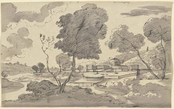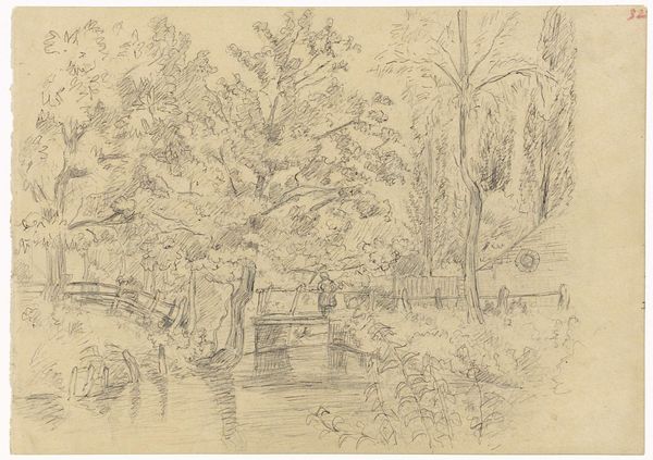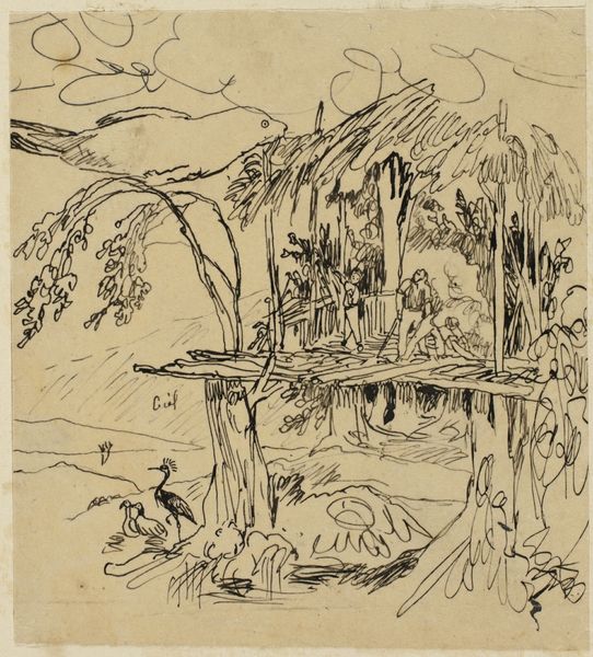 Editor: This is Rodolphe Bresdin's "Horsemen and Fishermen," an ink drawing on paper. The busy composition and the pen strokes create such an energetic feeling! What do you see in this piece, Professor? Curator: Energy, yes, but consider what kind of energy is on display here. Look closely: Who has access to leisure and who is actively laboring? Notice the placement of the fishermen, their small boat contrasting sharply with the elevated position of the horsemen. What does that say about power dynamics and social hierarchy during the time it was made? Editor: That's interesting. I hadn’t considered that perspective. The fishermen do seem somewhat isolated compared to the horsemen who occupy more space. Was Bresdin perhaps critiquing that social structure? Curator: It's possible. Bresdin lived through periods of significant social upheaval, so understanding the impact of those power structures on daily life would likely inform his art. What are some ways this artwork intersects with issues of class and access? Editor: Well, it definitely makes me think about who gets to move freely and who is bound to the water, to a particular way of life. The fishermen seem connected to a specific locale, while the horsemen have a different type of freedom. Curator: Exactly. And what about the means of production and ways of living? Notice how Bresdin uses his linework to emphasize their difference. Understanding that artistic choice allows us to delve deeper into potential social and political meanings behind a seemingly simple genre scene. Editor: This has really made me rethink how I see this drawing. I’ll definitely pay more attention to social commentary in art. Curator: Me too, every artwork provides new grounds to look back on history through intersectional lenses.