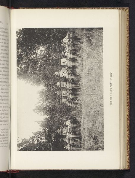 Curator: Here we have a print, an albumen print to be precise, of “Nagar Fair,” taken before 1895 by Frederick Saint John Gore. Looking at it now, I am struck by the sheer volume of humanity on display. What leaps out at you? Editor: An overhead view—the gathering crowds seem almost like ants viewed from above. It's fascinating how it reduces the individual to this kind of anonymous mass. All those lives, aspirations... reduced to a swarming texture. Curator: Yes, the perspective is really something. It positions the viewer—and perhaps the photographer, Gore—as distant, observing from a removed position. We can explore how that perspective shapes meaning within the context of colonial visual culture, what this distance does and why? Editor: Absolutely. This print, likely intended for Western consumption, aestheticizes this huge event, turns human gathering into a commodity in a way, to be packaged and distributed. Think of the process: the chemical preparation of the albumen, the exposure, the developing—each step a form of material labor imposed upon a scene ripe with it, teeming with individuals also working. Curator: Gore captured this teeming moment in history. And, with his work appearing amidst the broader context of Orientalism—a lens through which the West viewed the East— I feel this perspective really adds something, giving it almost that birds eye-like scope and detail that he wanted the audience to enjoy. I think for Gore it was not so much labor in terms of oppression and capital but moreso he might have wanted his intended western viewers to explore and maybe revel in a world that to them seemed teeming and bursting with energy. Editor: But even if Gore's intentions were benign, this process of image-making inherently mediates reality, controlling the narrative through its technological framework and distribution. This speaks directly to the ways power operates on society—even when presented as ‘objective.’ Curator: Well put. Thinking about "Nagar Fair", its process, how its labor is both literally within its frame, also through what hands it went. it encourages new appreciation and deeper insight. Editor: I completely agree. A truly complex and evocative artwork, ready for deeper consideration and dialogue.