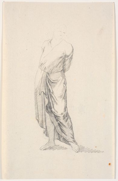 Jacques François Joseph Saly made this drawing of a standing woman in Greek garment with pencil on paper. Look closely, and you’ll see it is the careful and precise control of the pencil that gives this work its power. The artist uses the pencil in a very controlled manner, with delicate strokes to produce soft tonal variations to illustrate the figure’s draped garment and the soft contours of her face. Saly's choices weren't just about aesthetics; they reflect the cultural values of his time. In the 18th century, drawing was considered a fundamental skill for artists, architects, and designers. The ability to capture form and detail with accuracy was highly valued. The artist had to have had a deep understanding of anatomy and classical forms to create this work. Thinking about the drawing in terms of material and process helps us to appreciate the technical skill and artistic vision of the artist. It challenges us to consider how materials and methods shape the meaning and significance of art, and how it relates to the broader social and cultural context.