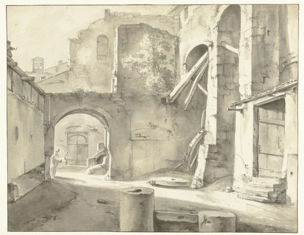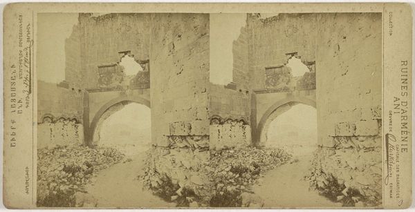 Editor: Here we have "The Evacuation of Fort Sumter," a somber albumen print dating back to 1861. It’s stark, wouldn’t you say? A scene of such complete destruction. What stands out to you as you observe this photograph? Curator: Ah, yes. It’s not just destruction; it’s history etched in sepia tones, isn't it? The ruined architecture whispers stories of conflict and surrender. To me, it feels like a poignant, photographic elegy for a turning point in American history. What do you think about the lone bird in the sky, almost a defiant act? Editor: I hadn’t really noticed it, actually, until you pointed it out! It definitely gives me a bit of hope, or at least, endurance amidst everything destroyed. Curator: It certainly gives me pause for reflection, don’t you think? The stark contrast reminds us that life finds a way, even amidst the ruins of war. It's a small detail that can carry so much symbolic weight. And those structural supports – the intent to rebuild immediately apparent, though reconstruction took years! It’s a dance between endings and beginnings. Does the foreground affect your perspective at all? Editor: I guess it does; I noticed the damaged arches immediately because of them. It reminds me of those Romantic paintings with ruins everywhere! Curator: Precisely. Think of it as an invitation to meditate on what has been lost and what might emerge. Does considering it this way change how you interpret it? Editor: It certainly gives it more depth, considering not just the devastation but that people tried to continue despite the damage. Curator: Absolutely. Sometimes art helps us reconcile opposing views; loss and progress, stillness and movement, wreckage and hope. I’ve gained a newfound respect for the resilience embedded within it. What do you take away from this reflection? Editor: For me, it's understanding that even the most somber historical document can contain multiple layers of meaning, both tragic and hopeful.
