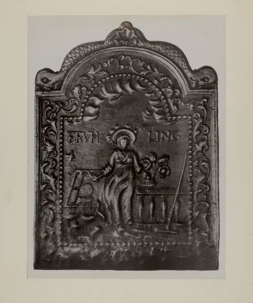 Curator: Oh, isn't that charming? Like stepping into a quiet dream. Editor: Indeed! We're looking at Richard Nicolaüs Roland Holst's design for the catalogue of the "Ideal Home Exhibition" of 1912, held here in the Netherlands. Curator: "Ideal Home," eh? Funny, it feels more like "Ideal Retreat." Those figures huddled by the fire, poring over a book—they seem so blissfully unaware of the bustle of an exhibition. Almost deliberately so. Editor: Precisely. Holst, entrenched in Symbolism and responding to anxieties over industrialization, perhaps envisioned a sanctuary against the modern world. An interesting application for promotional material intended for popular audiences. Curator: I love how the intimate scene is framed. Look at the fish swimming along the bottom and the birds at the top. Editor: A wonderful compositional choice: those stylized borders almost elevate the domestic sphere into something cosmically significant. Notice how those avian symbols are presented, perhaps freedom for Holland during this era. The inclusion of such imagery reinforces the Dutch aspirations to freedom through trade as a means to idealization. Curator: It also has such a handcrafted feel, doesn't it? A reaction against mass production, perhaps. I can imagine families dreaming of something handcrafted for their perfect life, but I have also been seeing more prints being massed produced to meet that high consumer demand. Editor: The artist blends graphic art techniques with such distinctive flair that Holst provides a blueprint to Dutch pride and industrious freedom during this era. I wonder if he foresaw the rise of consumer culture as something that can strip an image of all value; creating items instead of dreams. Curator: Food for thought. A delicate dance, then, between art, industry, and our deepest desires. That man clearly wasn't shopping on Amazon. Editor: Certainly not. It prompts me to ask whether it really ever exists...this utopia. Curator: The art world continues to bring forward unique perceptions; providing endless thoughts and interpretations for us to ponder. Editor: True. It will always prompt new investigations in the meaning of life!