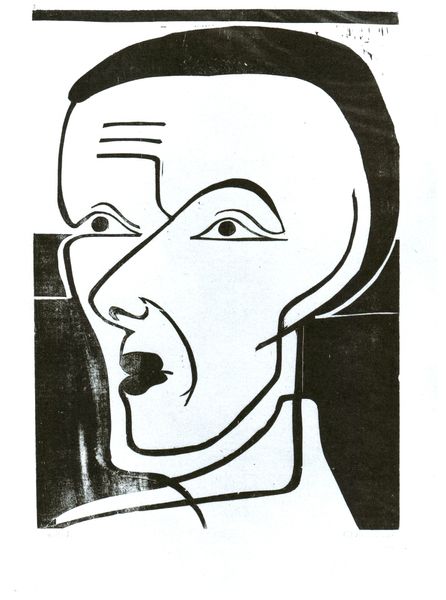 Curator: This stark woodcut print, "Self Portrait" by Josef Capek, was created in 1918, a turbulent period near the end of World War I. Editor: Immediately, it feels severe and almost confrontational. The sharp lines, the high contrast black and white... it creates a powerful, almost unsettling presence. Curator: Indeed. Capek, a Czech artist associated with German Expressionism, often utilized such bold contrasts. The choice of woodcut as a medium lends itself well to conveying a feeling of angst and fragmentation, which became a symbol for artists affected by the psychological landscape of the period. Editor: Looking at those eyes magnified by the round glasses, I'm wondering about his choice of caricature here. There’s a hint of critique, or maybe even vulnerability masked by intellect? And this exaggerated perspective—it mirrors how individuals felt powerless within a society driven to global warfare. Curator: The distorted features invite contemplation about how self-perception is often at odds with public persona. Caricature here does act as a mask—layering identity and emotional concealment. Editor: It’s interesting to consider this portrait in terms of national identity as well. Czech artists like Capek navigated the precarious territory of expressing themselves amid empires. There is a strong implication of a personal resistance and also, cultural defiance here. Curator: Consider the impact of such images on morale, especially considering print's relative ease of distribution. It democratizes not only art, but potentially also subversive sentiments through graphic form. The lack of subtlety reinforces this reading of the portrait. Editor: And it becomes clear that even in something as seemingly simple as a self-portrait, political and social layers permeate everything. This one manages to condense an immense pressure and sense of historical unease within such economical lines. Curator: Precisely. Capek’s Self Portrait leaves us pondering about the symbiosis between personal anxieties and global upheaval. Editor: An uneasy reminder that art frequently serves as both witness and commentary in our collective story.