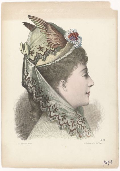 Curator: This watercolor print, "Ladies' Hats, No. 4671, from Journal des Demoiselles," created in 1888, feels so delicate. There’s a definite emphasis on line and a limited color palette. What grabs you about this image? Editor: Well, seeing these intricate hats from so long ago makes me wonder about the processes involved in making and distributing fashion like this. What was the social context for prints like this? Curator: Exactly! The 'Journal des Demoiselles' wasn't just offering aesthetic pleasure, but functioning within a larger economic system. Consider the labor involved—the artists creating the images, the printers reproducing them, the distributors, and finally, the milliners who used these as inspiration. How does seeing it this way shift your perspective? Editor: It’s interesting to think about the consumption aspect. These prints fueled a desire for specific materials—feathers, ribbons, lace. It must have affected entire industries. Were these materials locally sourced or were they globally traded commodities? Curator: Excellent point. The materials likely came from diverse sources, reflecting global trade networks of the late 19th century. The print, in turn, reinforced those systems by creating demand. Look at how the artist renders the textures; does that impact your thinking? Editor: Definitely. It is making me consider the materiality of not only the hats depicted but the watercolor itself. The print feels more connected to a larger network of production and consumption. I hadn't thought about that before. Curator: That is key! By examining the materials and methods behind "Ladies' Hats," we can uncover deeper meanings about 19th-century society. It goes far beyond just being a pretty picture. Editor: Thanks, I will definitely keep an eye out for that!