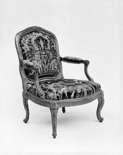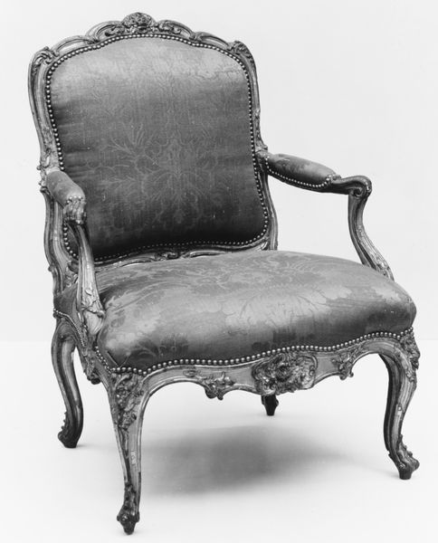 This armchair was crafted by Pierre Brizard in 18th-century France. It embodies the refined elegance and social stratification of the period. Consider the visual codes: the delicate carving, the silk upholstery. These details speak to the culture of luxury and aristocratic patronage that defined artistic production at the time. Furniture making wasn't just a craft, it was an art form. Pieces like this were commissioned for opulent homes of the wealthy elite, reflecting their status and taste. The armchair offers insight into the pre-revolutionary French society where comfort and beauty were privileges enjoyed by a select few. Its existence is a reminder of the deep social and economic inequalities of the time. To understand this artwork, we turn to historical records, estate inventories, and studies of decorative arts. Through these resources, the armchair becomes more than just a chair. It becomes a window into a distant world.