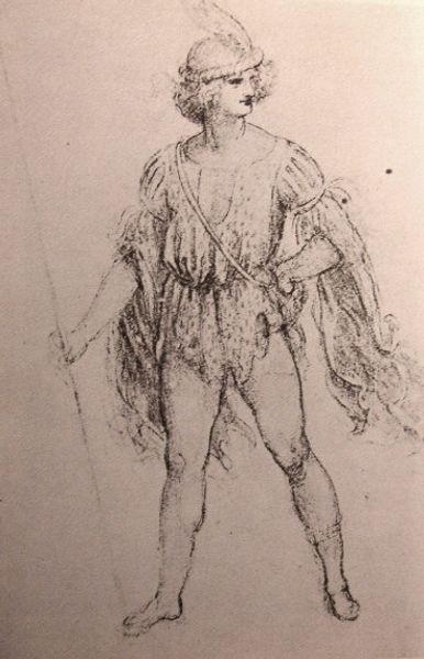 Editor: This ink drawing, titled “Cousturier,” was made by Dante Gabriel Rossetti in 1840. What strikes me is the detailed costume – it's clearly important to the identity of the figure. How would you interpret this work? Curator: It’s a compelling question. Considering the title "Cousturier," implying someone involved with costumes, the image evokes a potent sense of performativity. We aren't just seeing a figure, but a construction of identity *through* clothing. The costume becomes a symbol of a particular era or role, reflecting societal values and aspirations. What emotional impact does this emphasis on costume have on *you*? Editor: It feels theatrical and a bit removed from reality. The figure seems presented more as an ideal than a person. Curator: Precisely! Consider how Rossetti utilizes specific details—the feathered hat, the embellished jacket—to establish a cultural memory, linking the figure to romanticized notions of history. These elements speak not just to fashion, but to power, status, and the performance of self. Where might we see this performativity echoed in contemporary culture? Editor: I think social media – people curate their images to show idealized versions of themselves, like the figure in this drawing. Curator: Exactly! There is a direct link between this historical depiction and our modern self-representation. The symbolism woven into clothes transforms into our visual language, our brand… our way of asserting belonging to a specific social group, expressing status or identity, or making statements about social values. Editor: So, this image is like a blueprint for how clothing shapes identity through symbols, even today. Curator: Indeed. By exploring those visual signifiers within “Cousturier,” we can begin to deconstruct our own image-making. Thank you for your observations. It really sparked insight in this work. Editor: Thanks, it really opened my eyes to the visual cues that are always around us.