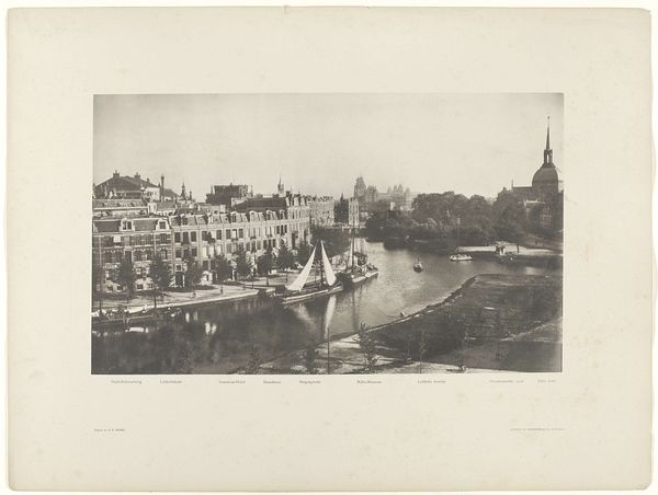 This photograph, by Gerrit Hendricus Heinen, captures a view of the Amsteldijk in Amsterdam from the rooftop of a house. It's a silver gelatin print, a process that was becoming widespread at the time, allowing for mass reproduction of images. The photograph’s materiality is significant. The tones, ranging from light grays to deep blacks, are achieved through a careful chemical process, coaxing an image from the light-sensitive silver salts on the paper's surface. The smooth surface and crisp detail speak to the increasing sophistication of photographic technology. But what stories do these advancements tell? As photography became more accessible, it democratized image-making. The rise of photography also reflects the changing social landscape, with the rise of the middle class, new modes of labor, and new forms of industrial production. The ease with which photographs could be produced and circulated also influenced aesthetic practices, blurring the lines between documentation, artistic expression, and the everyday image. By understanding the materials, processes, and social context of this photograph, we gain a deeper appreciation of the ways in which the world around us is shaped by technology, labor, and aesthetics.