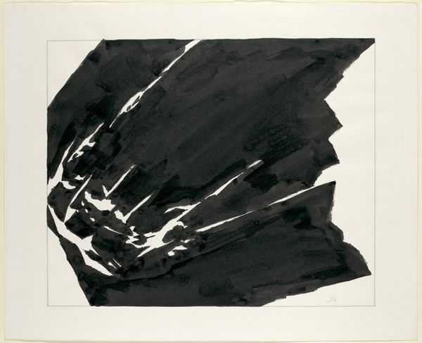 Editor: Franz Kline’s "Herald," painted in 1954, is such a striking monochrome piece, created using bold, impasto strokes. The stark black and white immediately evokes a sense of powerful simplicity. What socio-political undercurrents do you perceive within its abstract form? Curator: This piece speaks to me about the anxieties of the Cold War era. Look at how the bold, black strokes dominate the canvas. How does that aggressive gesture resonate with the socio-political tensions brewing at the time, in your view? The work almost becomes a stage, setting the premise for a broader commentary. Editor: It’s interesting that you see a correlation between form and the external political sphere! To me, the title “Herald” suggests almost an announcement of sorts, but I can't place what that might be related to. Curator: Consider this, what were artists “heralding” or perhaps critiquing at mid-century? Abstract Expressionism itself was, in a way, heralding a new artistic and cultural freedom in the West, a counterpoint to the more rigid social realism often promoted in Soviet states. Does that cultural positioning add another layer to your read of it? Editor: Definitely. Thinking about it that way, it is easy to perceive Abstract Expressionism's value as a means for cultural expression and political subversion. The artwork stands as an echo chamber for the zeitgeist of its time! Curator: Exactly! Kline’s work serves as a historical marker and a cultural touchstone, igniting necessary conversations and hopefully inciting tangible societal changes. What are your parting thoughts? Editor: I had never considered art as a tangible method of resistance or freedom. Looking through this socio-political lens changed my understanding completely! Curator: Mine as well! The work seems increasingly radical the more we deconstruct its contextual narratives!