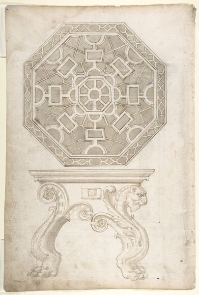 Editor: This sheet presents "Grotesque Decoration and Ceiling Designs (Recto); Geometric Design (Verso)," made with pen, ink, and etching by an anonymous artist in the 16th century. I’m struck by the variety of patterns – they’re so meticulous and captivating! What do you make of them? Curator: It tickles my imagination, actually. Look closely. Each motif—those elaborate arabesques, the regimented ceiling patterns—they feel like echoes of Renaissance grandeur, filtered through a highly personal, almost whimsical lens. Editor: Whimsical? Curator: In a restrained way, certainly, but yes. Think about it – these aren't just designs; they are a vocabulary. An artist, perhaps longing for recognition, sketched these patterns to impress wealthy patrons, you think? Offering them new aesthetics, or maybe he had the idea for his patron to construct it with different types of materials. Perhaps, he was thinking of gold, or emerald... Or do you think that would be taking it a step too far? Editor: Definitely a stretch, but the penmanship is incredibly alluring, nonetheless. Are these kind of sketches common for the era? Curator: Absolutely! In that time, decorative arts became quite popular; these drawings functioned as pattern books or model designs for craftsmen. A lot of artists were designing them because everyone needed inspiration, but who was there to take on that creative role. Also, during the time new construction projects were becoming very common, people liked to expand or innovate within their homes. These drafts could then inspire unique ceiling paintings or even some type of furniture. Editor: It is interesting to think of it this way, as creative business proposal almost. Thanks for shedding some light! Curator: And thank you. It is exciting how a drawing of mere lines becomes something a bit more.