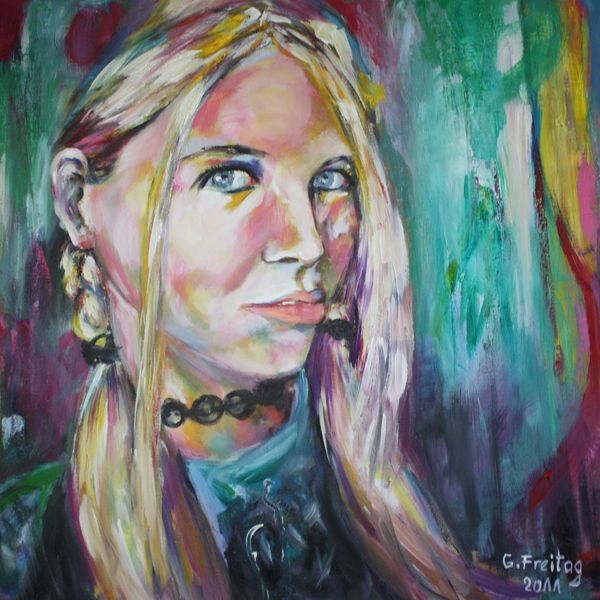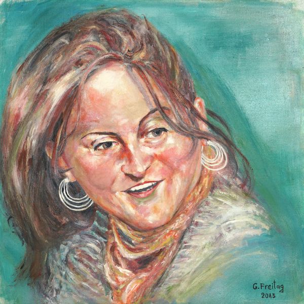 Editor: We are looking at "Bebe Rexha," an oil painting portrait by Gazmend Freitag from 2021. There's something immediately engaging about the sitter’s direct gaze and slight smile. How do you interpret this work in relation to contemporary portraiture? Curator: This piece compels us to consider representation itself. Given its title, we can assume this is a portrait of a known celebrity, but its painterly style, verging on expressive realism, complicates the visual shorthand of celebrity image. It challenges our assumptions of constructed celebrity identity. Editor: That’s a fascinating point. So you’re saying the artist is inviting us to consider the gap between the real person and the public persona? Curator: Exactly. We might ask, what is Freitag trying to communicate about contemporary ideas around beauty, performance, and identity? The brushstrokes are quite visible. It makes me wonder how the style and aesthetic choices are relevant in portraying a public figure. Editor: It almost feels like he’s pushing back against the slickness often associated with celebrity imagery. Curator: Precisely. By employing a more raw, honest depiction, Freitag invites a critical examination of the constructed nature of fame and the unrealistic expectations projected onto figures like Bebe Rexha. We see a contemporary subject through the tradition of oil painting. It acknowledges its history. Editor: That gives me a whole new perspective on the artwork. I was initially drawn to the realistic depiction, but I hadn't considered how that plays into larger social issues around image and identity. Curator: It highlights how even seemingly straightforward portraits can be deeply engaged with broader cultural narratives. Seeing this image has renewed my interest in identity within portraiture, and how identity can be intentionally created by an artist.