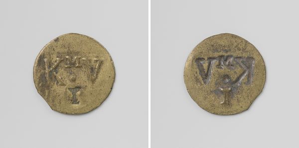 Curator: Here we have a rather curious artifact from between 1818 and 1859, held in the Rijksmuseum: a house coin from the Veenhuizen colony, commissioned by the Society of Benevolence and valued at thirty cents. Editor: It has a brutalist aesthetic. Even in its small format, it evokes the weight of a monument—an unflinching portrait. The circular form containing somewhat crudely stamped images and text, all rendered in weathered metal, creates an austere presence. Curator: Indeed. Veenhuizen was essentially a settlement aimed at "re-educating" the poor and orphaned, employing them in agriculture and industry. These tokens were used internally, ensuring economic activity remained within the colony’s control. One side bears the emblem of the Society, while the other features the colony's mark and the denomination. What does this say about societal views towards poverty at the time, towards the agency of people, or towards freedom? Editor: From a formalist standpoint, I’m drawn to the contrast between the coin’s perfect geometry, versus its material degradation. Scratches, pits, fading detail…all visually tell a story. In this context, the coin's metallic composition lends itself to an interesting study of decay and erosion as metaphorical markers of a failing system. This creates a tension between the ordered control intended through its geometric shape, and the real world implications of exploitation. Curator: Absolutely. The coin materializes a whole web of social power structures—it stands as a reminder of policies that strip individuals of their economic self-determination, and their very sense of worth. This historical item sparks questions: who was truly benefiting from this controlled environment? Where does charity become exploitation? And where do economics meet morality? Editor: This tiny metal disc yields more than just monetary worth; it evokes thoughts on socio-political systems, industrial practices, and power constructs. Through such study and contemplation, one gains heightened awareness of intricate layers woven through human creation. Curator: Examining this simple object offers an unexpectedly poignant journey through our understanding of power, social control, and the value we place on human dignity.