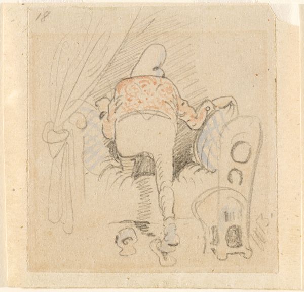 Editor: So, this ink drawing from 1869, titled "Caricature of Man, Woman and Dog" by Alfred Henry Forrester is… unexpected. The figures, particularly the almost deer-like woman and the elephant-headed man, are so peculiar. What’s your interpretation? Curator: It’s a window into the 19th-century social commentary through caricature, a popular medium for critiquing social norms and political figures. How do you perceive the attire of the figures in relation to their animalistic features? Editor: Well, the formal wear is a stark contrast – the woman's ruffled dress, the man's top hat. It’s absurd, like a play on Victorian society's obsession with appearance. It makes you wonder who or what aspects of society Forrester is skewering. Curator: Precisely! Caricature often amplifies existing social tensions. Consider the rise of mass media during this period; images like these had a wide audience. The exaggerated features, then, weren’t just comical. They were powerful tools of social critique. Is the dog given 'wings'? How might that feature add meaning? Editor: It is...odd! It suggests a kind of 'fantasy' that isn't real? Or 'elevated' beyond its station? Curator: That's interesting. Perhaps pointing at Victorian societal 'climbers'? The whole drawing is performative, making its critique very accessible. What's your sense now? Editor: Seeing it as social commentary makes perfect sense. It’s like he's taking aim at the conventions and the pretensions of the time, using humor to do it. It does make you question what it might say to audiences today? Curator: Precisely - it's how these objects shift their significance and public meaning in a constantly evolving cultural landscape. Thank you for helping me consider this in our current time!