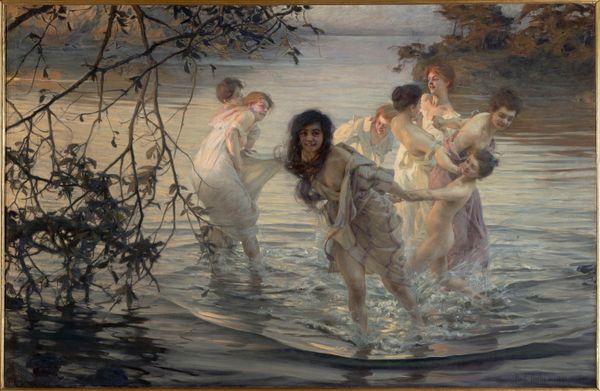 Evelyn De Morgan painted 'The Sea Maidens' with oils on canvas, using traditional fine art materials to create a scene that, at first glance, feels purely aesthetic. However, if we consider the Victorian context, the artwork can be understood as a product of the late 19th-century’s material culture. The rich colors and smooth finish, achieved through careful layering and blending, would have signaled luxury to its original audience. The depiction of the female figures also reflects the artist’s response to societal expectations, and the limited roles available to women. De Morgan, like other female artists of her time, was challenging conventions. The amount of work and skill involved in producing such a painting allowed her to make a statement about women’s capabilities, not as craft producers making decorative objects, but as artists in their own right. By understanding the making and context of “The Sea Maidens," we can appreciate the nuances of its meaning, and reconsider distinctions between fine art and craft.