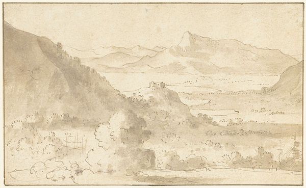 Karel du Jardin made this landscape with cows using pen in brown and gray ink around the mid-17th century. The sketch gives us a glimpse into the world of the Dutch Golden Age, a period defined by unprecedented economic growth and artistic innovation. During this time, artists increasingly turned their attention to everyday subjects. Landscapes, like this one, became a popular genre, reflecting a growing sense of national pride and connection to the land. This drawing captures a serene scene, maybe in Italy, with grazing cows and a distant hilltop town. But the image is also interesting because it reflects the economic prosperity of the Netherlands at the time. The cows, symbols of agricultural wealth, are placed in an idyllic setting. In this period, it was common to idealize rural life even as Dutch society was becoming more urbanized and commercially oriented. To fully appreciate this work, historians consult archival documents and period writings. This helps to better understand the relationship between art, society, and the institutions that shaped its production and reception.