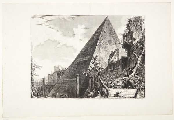 This is Giovanni Battista Piranesi's etching, depicting the Pyramid of Caius Cestius with the Porta San Paolo, capturing Rome's layered history. The pyramid, a form borrowed from ancient Egypt, stands as a potent symbol of eternity and the afterlife, themes deeply embedded in human consciousness. The pyramid form echoes across millennia, from the monumental structures of Giza to modern reinterpretations. Its geometric precision speaks to humanity's quest for order and permanence. The emotional weight of such a form is profound, tapping into our primal awareness of mortality and the desire to transcend it. Consider how this shape elicits feelings of awe and introspection, triggering memories of past civilizations. As we trace its journey through time, the pyramid's significance has shifted. What began as a sacred structure in one culture became a symbol of power, knowledge, and artistic ambition in another. In Piranesi's Rome, the pyramid serves as a poignant reminder of cultural inheritance, a testament to the enduring power of symbols.