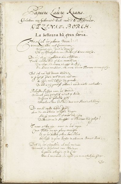 Curator: This is "Grafschriften op de gebroeders De Witt, 1672," dating from between 1672 and 1699, now held at the Rijksmuseum. The piece consists of ink on paper and textile. It's an anonymous broadside memorializing the De Witt brothers. What are your initial impressions? Editor: Stark and sobering. The tight, cramped calligraphy conveys a real sense of urgency and perhaps even suppressed rage. It’s raw, unpolished, like a hastily written lament. The slight yellowing of the paper only intensifies the feeling that it’s a direct artifact of a brutal time. Curator: Indeed. The De Witt brothers' lynching was a political earthquake. This broadside, filled with poetic indignation, offers a glimpse into the intense emotions of the period. The use of Dutch rather than Latin tells us it was aimed at a popular audience. Editor: Notice how virtue is invoked at the beginning— "Virtuti Comes invidia," which could be translated as "Envy is the companion of virtue." This signals immediately that the writers viewed the De Witts as virtuous men destroyed by jealousy and political machinations. Curator: Exactly. The symbolism isn’t subtle. These poems decry the barbarity of the act, accusing Holland of ingratitude and faithlessness. The image of enemies rending flesh… it’s a vivid attempt to cement a particular interpretation of events in the public consciousness. Editor: That phrase, “Knaagt nu ondankbre gemoent", "Now gnaw, ungrateful community," really hits hard. It’s a complete reversal of typical civic pride, depicting the nation itself as a ravenous, unfeeling beast. The script lends itself to a furious scream on paper. Curator: Broadly distributed poems such as these, visually immediate through their graphic typography and potent iconography, helped transform the De Witts into martyrs for a certain political faction. Memory made through art, quite effectively. Editor: It definitely prompts us to reconsider the fragility of reputation and how swiftly public sentiment can turn. This is less a formal portrait and more a visceral cry of protest against injustice—one that still resonates centuries later. Curator: I see it similarly, this serves as an emotional record which allows us to consider its meaning and effect upon 17th century society. Editor: Agreed, now it sits inside a modern-day context which is a strange place for something of this nature, given its intended use at the time.
