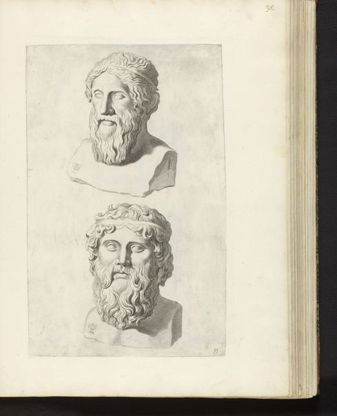Theodor Matham created these "Bustes van twee mannen met baarden" using pen and brush, with grey wash, sometime between 1605 and 1676. The delicacy of Matham's lines speaks to his mastery of engraving, a process requiring immense patience and control. The grey wash adds depth and volume to the figures, almost mimicking the look of stone sculpture. But it's the artist's hand, not the chisel, that defines the contours of these busts. Consider the social context: printmaking during Matham's time was becoming increasingly sophisticated. This wasn't just about reproduction; it was about creating original works with their own aesthetic value. The skilled labor involved in creating such prints elevated them beyond mere copies, blurring the lines between craft and art. Looking at the busts, you can almost feel the artist's hand moving across the paper, building up layer upon layer of ink and wash. It's a testament to the power of materials and making in shaping our understanding of art, a reminder that even the most delicate of drawings can carry profound cultural significance.