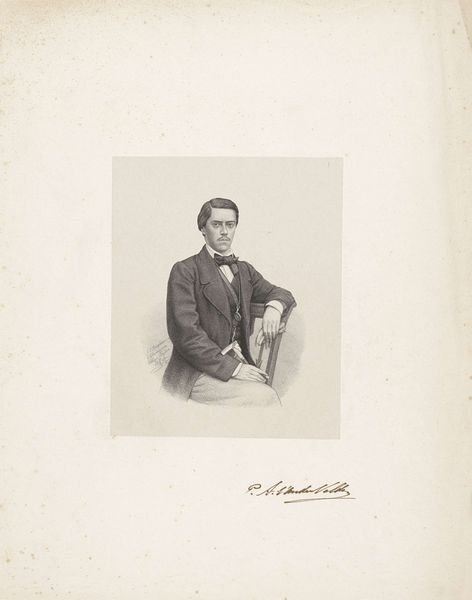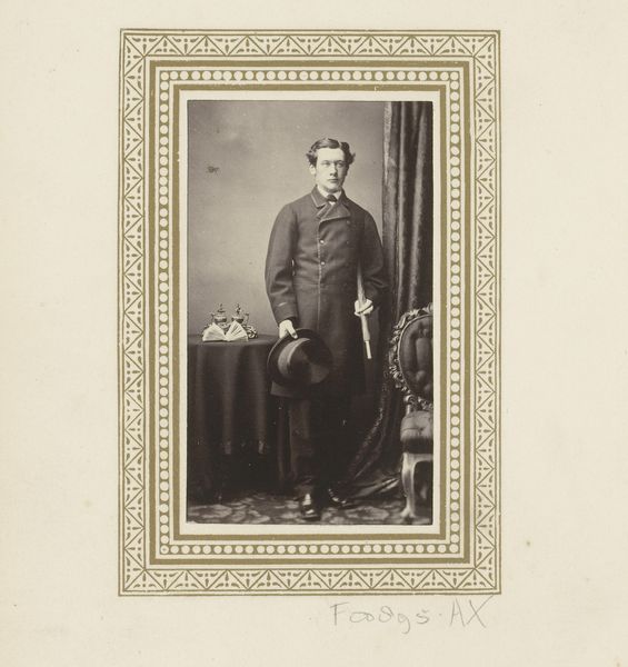 This captivating photograph by Eduard Fuchs presents a seated man on a balustrade, hat in hand. The subdued sepia tones and formal composition immediately evoke a sense of historical distance. The subject's placement, perched rather informally on the balustrade, creates a subtle tension with the rigid structure of the frame and backdrop. The light catches his checkered trousers, disrupting the somber palette and adding a layer of complexity. We can interpret the balustrade as a semiotic marker, traditionally symbolizing status and separation. Here, it positions the man in a space that is both elevated and confined. The hat, casually held, becomes an object of contemplation, its circular form contrasting with the linear elements surrounding it. Notice how Fuchs uses this interplay between formal structure and subtle disruption. It challenges our understanding of portraiture as a mere representation, and invites us to reflect on the underlying cultural codes and conventions that shape our perceptions.