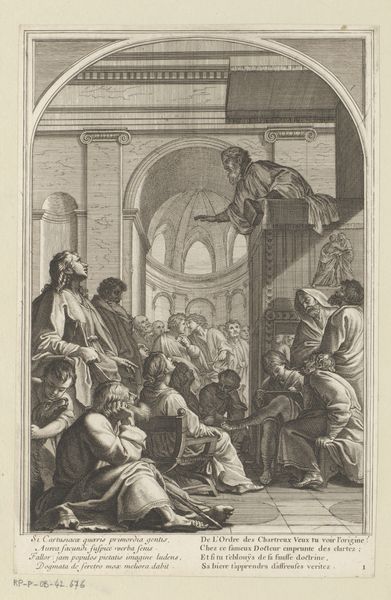 François Chauveau’s engraving captures Saint Bruno and his disciples renouncing worldly life. The act of renunciation is central here. We see figures turning away, a symbolic departure echoed throughout history in various forms. Consider the “conversio” motif, common in monastic traditions, where individuals turn from earthly concerns to spiritual devotion. This turning away isn't merely physical; it's a profound psychological shift. In psychoanalytic terms, it mirrors the ego's attempt to detach from worldly attachments, seeking a higher, more abstract ideal. The gesture of the open arms, seen here, appears throughout time, from classical orators to religious figures, signifying both offering and surrender. It is a powerful expression of internal conflict and ultimate resolution. The emotional weight of this renunciation engages us, resonating with our own subconscious desires for detachment and spiritual fulfillment. It is a cyclical motif, reappearing through history, constantly reshaped by the cultural and psychological currents of its time.