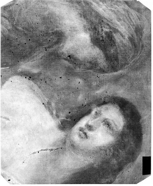 Curator: This is an X-radiograph of "The Calling of St. Peter," after Domenico Tintoretto, part of the Harvard Art Museums collection. The film itself measures about 35 by 43 centimeters. Editor: It’s ghostly, isn't it? Almost like a photographic negative, stripping away the color and leaving only the barest structural bones. Curator: Exactly. X-radiography allows us to see beneath the surface, revealing hidden layers and the artist's process. Think of the historical context, the scientific advancements that allow us such insight! Editor: The composition feels almost skeletal. You can see the density variations defining form, like stark chiaroscuro. Look at how the light barely glances off the figures. Curator: This technique revolutionized art history, offering non-invasive ways to study paintings, their evolution, and even attribution. Editor: It certainly offers a unique perspective, revealing the underlying architecture of Tintoretto's vision. Curator: Indeed, a tangible intersection of art and science that reshapes our understanding of artistic creation. Editor: Quite fascinating to see the art laid bare—literally and figuratively.