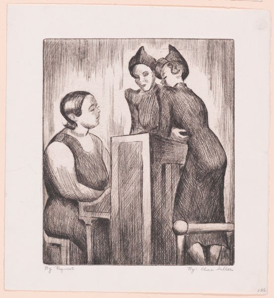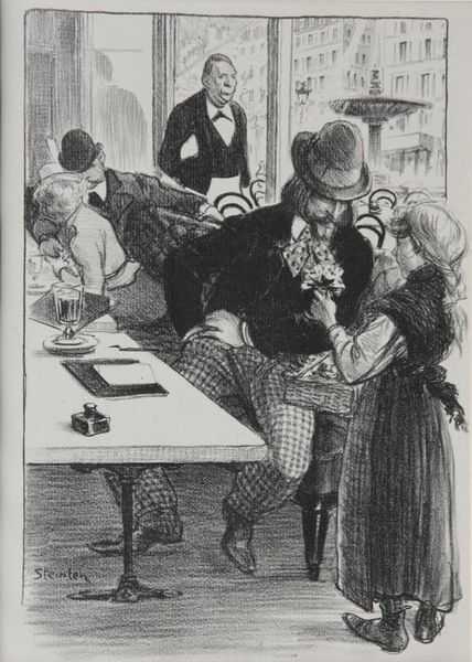Editor: This is "Trois heures," or "Three O'Clock," a lithograph by Honoré Daumier, created around 1839. It's fascinating; a group of men are crowded together, seemingly observing some event. I’m drawn to how Daumier used the lithographic process to create such a detailed image. What’s your take on this print? Curator: Daumier's work, particularly his lithographs, is rooted in the material conditions of 19th-century Paris. The print wasn't about showcasing technical prowess, but mass production. Lithography enabled the dissemination of his satirical commentary to a wide audience through publications like *Le Charivari*. Editor: So the medium itself was crucial to his message? Curator: Absolutely. He used lithography, a relatively new and accessible printmaking process, to critique the bourgeoisie, showcasing their vanity and superficiality to the public. This particular print is part of his series, "La journée du célibataire". Editor: I noticed the detail of clothing. Is it connected to his intent to scrutinize bourgeoisie? Curator: Definitely! Consider how the clothes communicate status but also restrict movement and individuality. How does this print’s realism, achieved through the labor-intensive process of lithography, both elevate and mock its subject? Editor: That makes me see it differently now. I was initially focused on the imagery. But the means of production also contributes meaning to the final work. Curator: Precisely. Daumier's genius lies in his ability to wield readily available materials for incisive social commentary. It really speaks to how material culture and class critique work in tandem here. Editor: Thanks, it’s incredible how looking at production can open up new avenues for understanding the artwork.