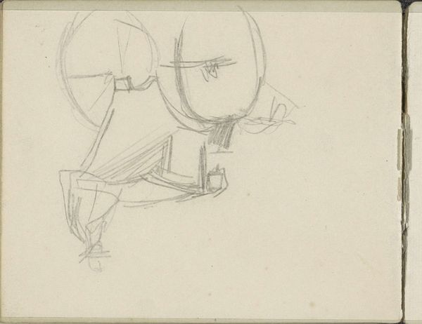 Editor: Here we have Willem Witsen’s pencil drawing, “Twee studies van een paardenkar,” which translates to “Two Studies of a Horse Cart,” created around 1888-1891. There’s something wonderfully raw and immediate about it, like a fleeting thought captured on paper. It feels so free. What strikes you when you look at it? Curator: It whispers to me of fleeting moments, a dance between observation and feeling. Notice how the lines, though simple, seem to pulse with a restless energy. Witsen isn’t just showing us a horse cart; he's offering us a glimpse into his mind’s eye. It's the essence of the thing, the memory of movement itself, wouldn’t you say? Like a dream fading at dawn... Do you get a sense of that fragility too? Editor: Definitely. It’s almost as if he was trying to catch something before it disappeared. The roughness of the lines, they feel so vital and energetic. It reminds me a bit of Impressionist painters capturing light and atmosphere. But instead of light, Witsen seems to be chasing after…motion? Curator: Precisely! The immediacy of capturing life on the go. But consider this, the drawing itself could represent a quiet defiance. Photography was maturing at this time. Witsen’s work reminds us that even in the face of technological advancement, the artist's subjective perception offers something a lens never can: a soul. Do you think it says something about embracing imperfection? Editor: That's such an interesting point! I hadn't thought of it that way. Yes, absolutely. The sketchiness, the almost unfinished quality, that becomes the point. It is more intimate and imperfect in that human act, right? Curator: Indeed. It becomes a poignant meditation on time, perception, and the enduring power of a simple pencil stroke. Editor: Well, looking at it now, I see so much more than just a sketch of a horse cart. It is about capturing movement. Curator: See? We both traveled a great distance, just by letting a little old drawing do its talking.