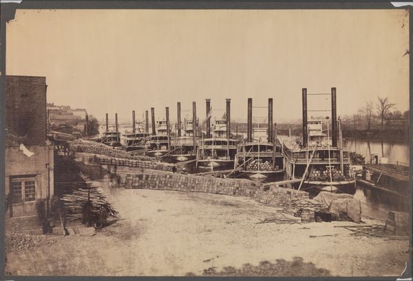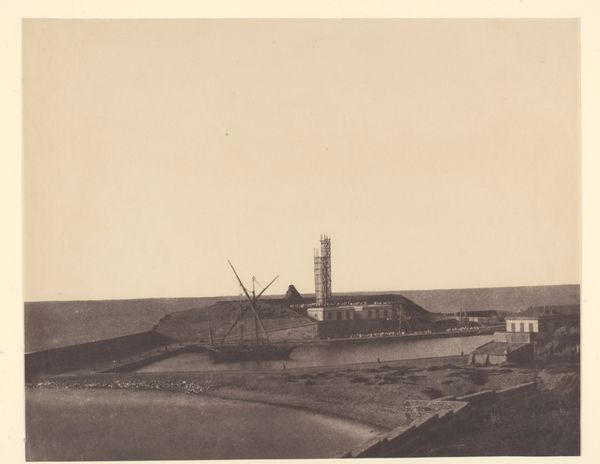 Editor: So, this photograph, "Bovenstoomgemaal Prins Alexander," potentially from 1867, by Jacobus van Gorkom Jr., offers such a clear and realist rendering of what looks like a building under construction. The bare wood and bricks against the neutral sky really communicate the hard labour behind such an industrial project. What stands out to you as you look at this work? Curator: This image speaks volumes about 19th-century Dutch society. The construction of the Bovenstoomgemaal, a steam-powered pumping station, symbolizes technological progress and land reclamation efforts in the Netherlands, which is critical to its identity and economy. How does the presence of the workers in the photograph influence your understanding? Editor: Well, seeing them gives a human scale to the endeavor. You get a sense of how much effort went into this infrastructural development. Were such projects points of national pride? Curator: Absolutely. The 19th century witnessed a surge in large-scale engineering feats. Steam power meant ambitious water management. The technology being deployed here represents progress and even a social restructuring; an attempt to reshape the very landscape, making it a tool. Also, note how photography itself plays a role in documenting and celebrating these changes, lending it the feel of an 'official' record. Do you agree that the print feels quite staged? Editor: Now that you mention it, there’s a formality in the composition, suggesting a kind of official record or report. Thanks, I never would have considered how it showcases progress for societal purposes. Curator: Thinking about images like this enriches how we understand progress itself.