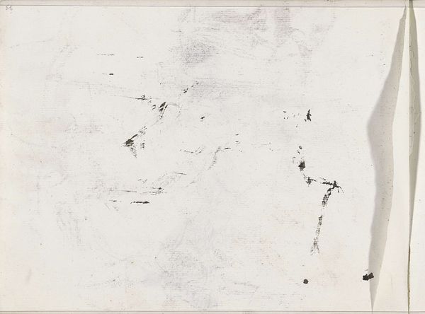 This artwork is a transfer of a chalk drawing on page 22 verso, by Isaac Israels. It's created using a transfer technique, a process that inherently involves a copy, a trace of an original. Look closely, and you can see a ghostly image, an echo of the initial chalk drawing. The softness of the chalk allows it to lift and transfer, creating a diffused, textured impression. The image is now separated from the artist’s hand, appearing as a faint presence on the page. This work prompts questions about authenticity, originality, and the value we place on the direct touch of the artist. The transfer process creates distance, a step removed from the artist's initial intent, and introduces accidental marks, dust, and smudges. These unintended interventions become part of the work, adding to its unique character. By focusing on the process of reproduction, Israels challenges our perception of drawing and invites us to consider the rich potential of the copy.