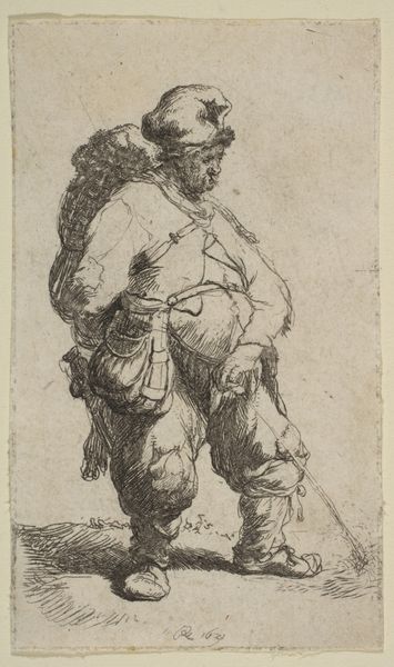 This etching presents a cooper, a craftsman who makes wooden barrels, by Willem Basse. Observe the cooper's tools and the barrel staves he carries. These are not merely objects; they are symbols of labor, community, and tradition, rooted deeply in the cycle of sustenance. Across cultures, the image of carrying—burdens, tools, or harvests—resonates. Consider Atlas, bearing the world. Or classical depictions of Christ carrying the cross, a profound symbol of suffering. And then, the cooper’s burden, so mundane in comparison, yet equally potent in its connection to human endeavor. Here, the simple act of labor becomes a symbol, etched into our collective memory, each line imbued with the weight of generations past. It reminds us that even in the most ordinary of lives, there's a universal story of survival and continuity. A cycle, always turning.