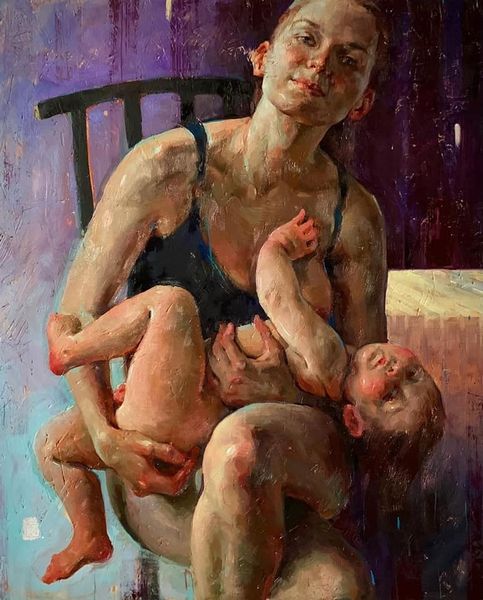 Tania Rivilis created this painting, "Tenderness," with an unknown medium. Here, the iconic Madonna and Child motif is explored through bold, modern brushstrokes. The mother, cloaked in vibrant red, cradles her child, their figures intertwined against a backdrop of contrasting blues. This echoes countless depictions throughout history where the Virgin Mary offers protection and love, an emblem of the nurturing, almost primal, bond between mother and child. Consider, for instance, the variations of this motif during the Renaissance. The seated Virgin holding the Christ Child would evolve to reflect cultural values, yet the core message of maternal care remained constant. This composition taps into our collective memory, a deep, almost subconscious recognition of the protective embrace, evoking feelings of warmth, safety, and unconditional love. The painting's emotional power resides in its ability to access these deeply ingrained associations. It’s a testament to the cyclical nature of symbols, constantly reappearing throughout time, imbued with new meaning, yet forever rooted in humanity’s most fundamental experiences.