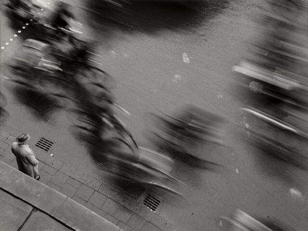 This is Harry Callahan’s photographic print, Detroit, made sometime in the mid-twentieth century. The real subject here is time, and how a photograph can collapse multiple moments into a single frame. I find myself mesmerized by the layering, the way Callahan captures both the solid reality of parked cars and the spectral image of buildings across the street. It's like Detroit itself is a ghost, imprinted on the present. The monochrome palette only adds to this feeling, reducing everything to shades of memory. Look at how the details of the cars – those gleaming headlights, the curve of a fender – are repeated, slightly out of sync, creating a visual echo. It reminds me a bit of Gerhard Richter’s blurred paintings, which also play with the tension between clarity and abstraction. Both artists seem to be asking: how do we really see? And can a work of art ever truly capture a single, definitive truth?