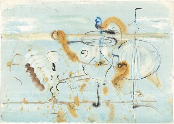 Mark Rothko made this untitled work with watercolor, ink, and graphite on paper. The way the colors bleed and blend suggests an art-making process that embraces chance and improvisation, like letting your thoughts wander on a walk, or allowing a doodle to take on a life of its own. It reminds me of Cy Twombly, another artist who embraced a sense of freedom. There is a balance of intention and accident. Look closely, and you will see how the washy, transparent colors create depth and atmosphere. The frenetic scribbles of ink and graphite add a sense of energy and movement, while the pale blues and yellows evoke a feeling of melancholy, not unlike Agnes Martin. Notice the vertical, blue streak on the lower right. It anchors the composition while acting as a visual echo of the network of lines and shapes dancing across the surface. This piece captures a fleeting moment, a whisper of emotion caught on paper. It reminds us that art can be a form of meditation, a way of exploring the complexities of our inner lives, and that ambiguity is something to be embraced, not feared.